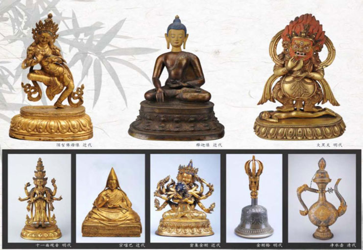 The brave and wise Tibetan people developed unique Tibetan Buddhist statues full of ethnic characteristics and geographical features. The Tibetan Buddhist statues are made of various materials including clay, stone, wood and bronze. Of all these, the most representative ones are bronze statues.